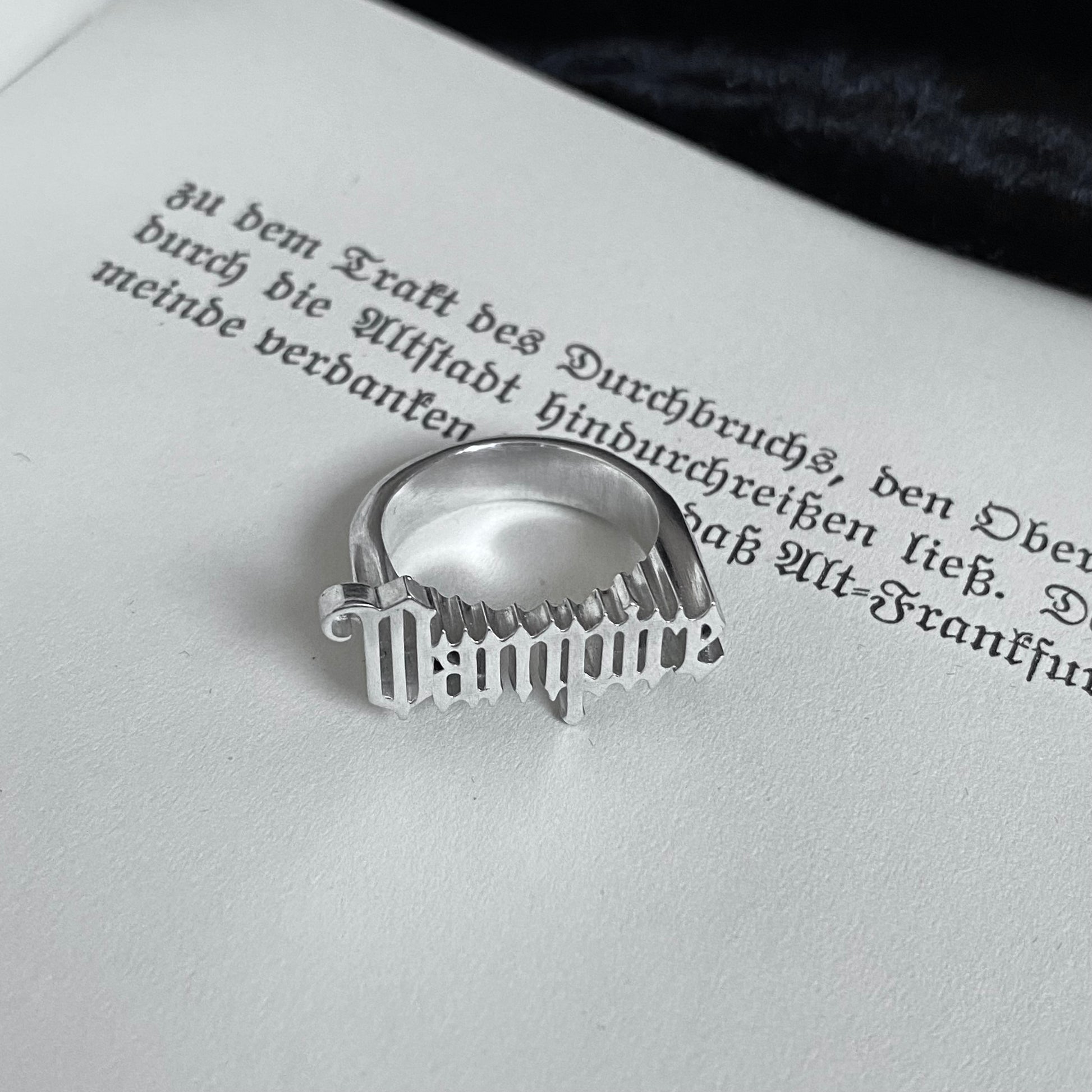 Anillo confeccionado en plata ley 950, perfecto para lucir tu lado más vampiro. Con un diseño elegante y tipografía Fancy Card Text este anillo te hará sentir como una verdadera criatura de la noche. Hecho con plata sólida, materiales de alta calidad y tecnología 3D, lo que garantiza un anillo duradero y resistente. Además, es anti-alergénico, lo que lo hace ideal para pieles sensibles.