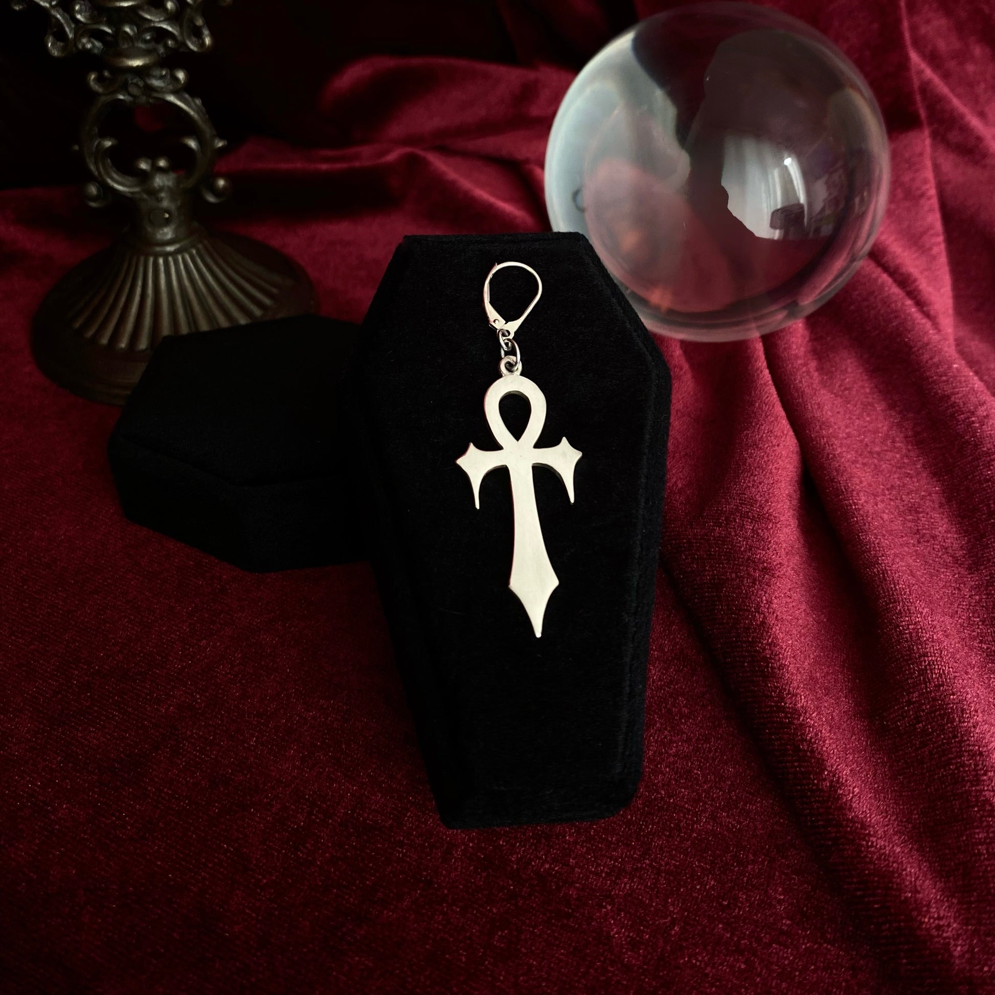 Este diseño combina la simbología de la cruz egipcia (Ankh) con la cruz gótica. Este accesorio evoca la esencia de la eternidad y la vida después de la muerte, y es confeccionado en plata 980 para ofrecer un símbolo de protección y espiritualidad.