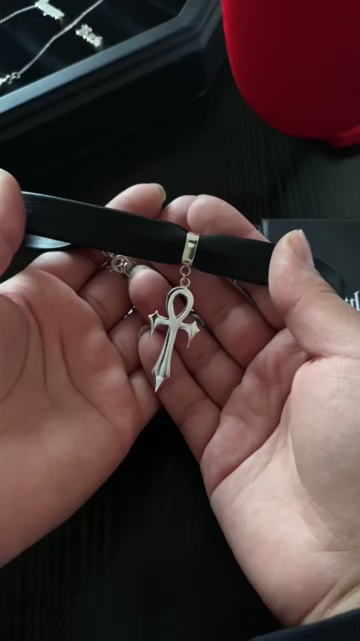La cruz es una representación del Ankh (☥️ Símbolo de vida eterna y protección ☥️) y su medida es de 4,5 cm x 2,1 cm.